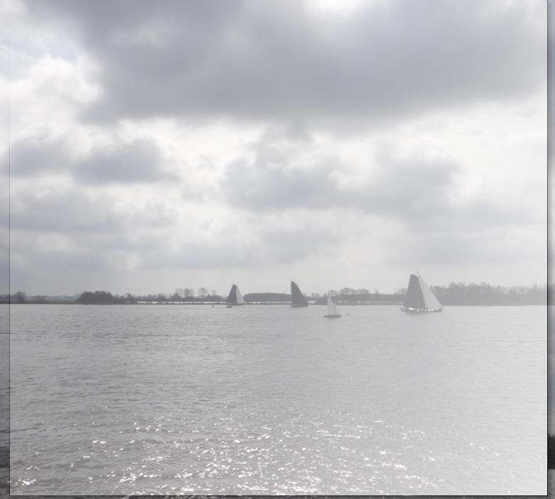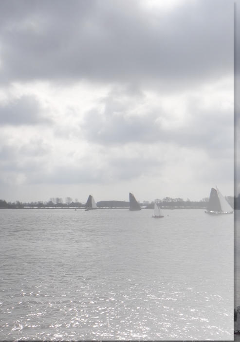 Met 1 omgeslagen Skûtsje in de morgen is de kans dat er vanmiddag meer Skûtsjes omgaan als de wind en de vlagen alleen nog maar toenemen best wel redelijk. Dus niet slim en verantwoord om vanmiddag te gaan zeilen. Ik vertrek richting de kippenbrug om OW boven A te hijsen (vandaag geen wedstrijden meer)